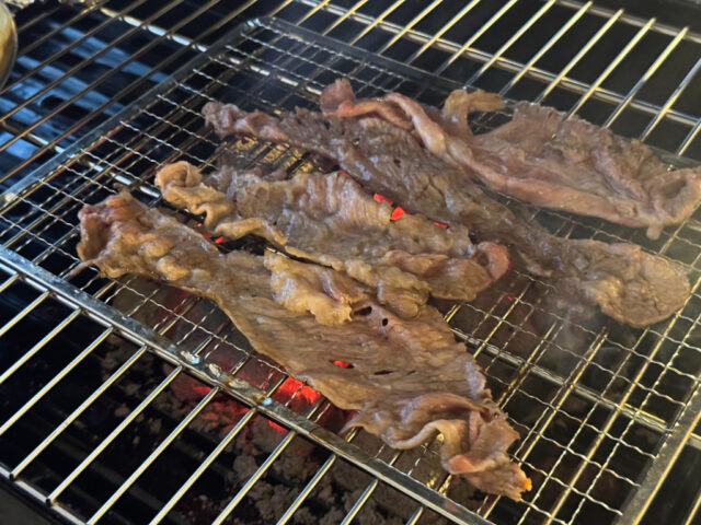 お肉が高速レーンでお肉が畳の上で運ばれてきます。