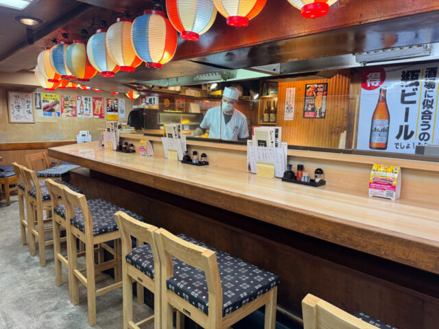 店内は2階はレーンでお肉が投げれてくるボックス席になっていて