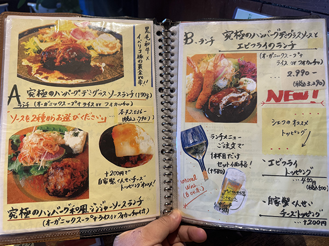 このお店はハンバーグがすごく人気あるんですが、僕はオススメしてもらったEランチ2,900円をお願いしました。