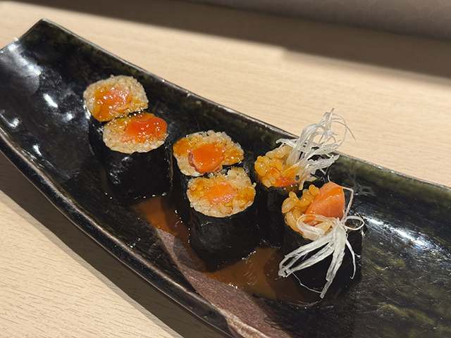 イカ墨のシャリの濃厚な旨みにこの大トロの脂の甘みが負けてないですね〜〜