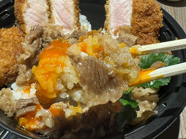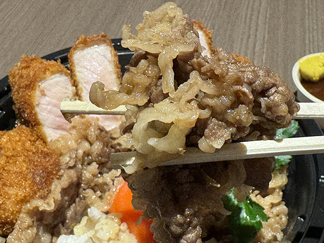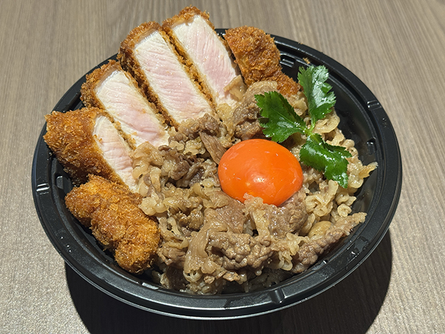 牛丼とカツ丼のミックス丼になっています。