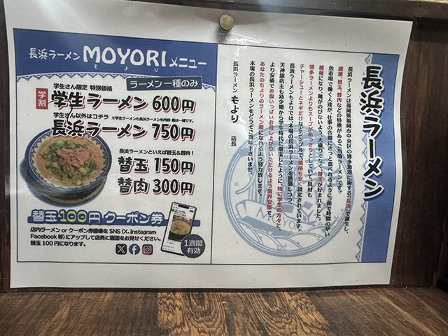 「天神旗」がプロデュースしたお店がオープンしたって聞いたので、早速『長浜ラーメンMOYORI』に行ってきました。