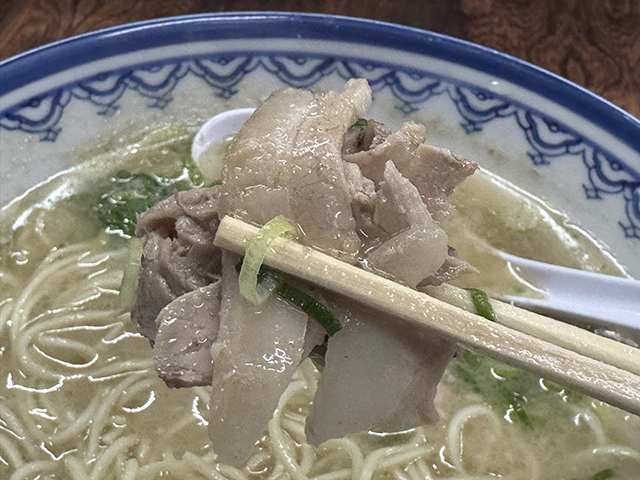 あっさりした豚骨スープで塩味がしっかりしていて美味しいですね〜〜