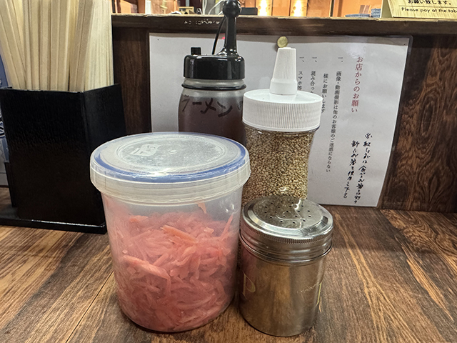 ライト豚骨はこの紅生姜との相性がバッチリで癖になる美味しさです。