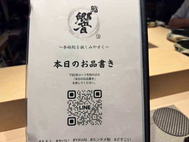 癒し系どすこい鮨職人が握る本格鮨を親しみやすく食べれるお店がオープンしたって事で、お誘いしてもらったので『鮨 響』に行ってきました。
