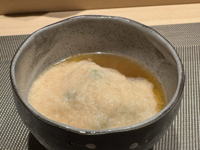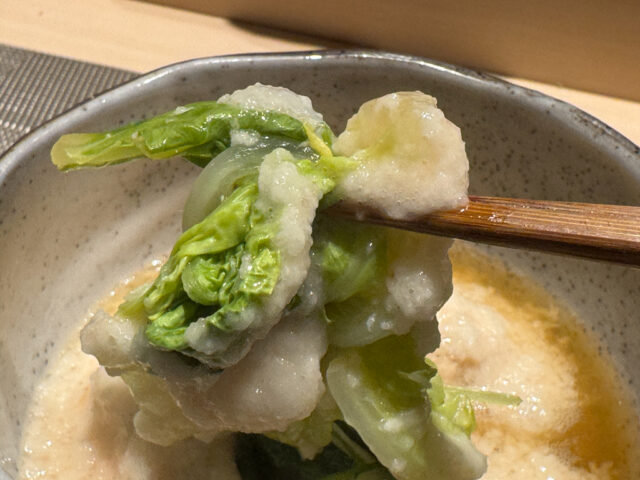 醤油ベースのちゃんこに仕上げに山芋がたっぷりかかっています。