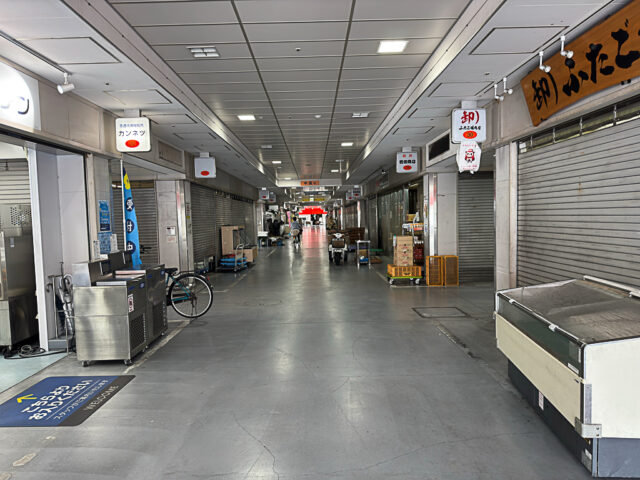 こんな感じの卸売の店舗さんが並んでる1階に
