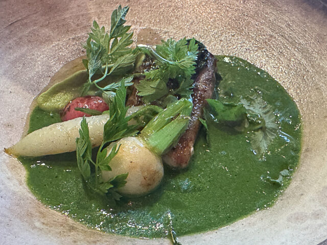 濃厚な鴨旨みを引き立てるカボチャソースの甘みがいいですね〜〜