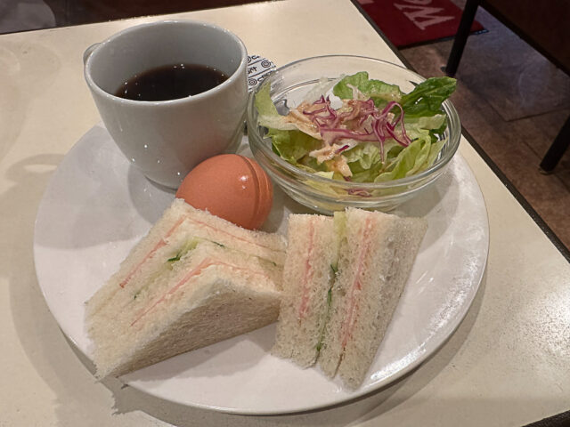 ハムサンドにサラダにゆで卵にコーヒーまでついて330円はビックリです。