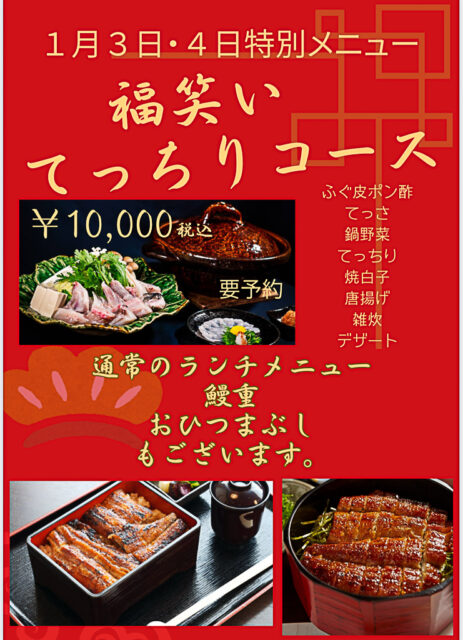 すでに予約が入ってきてるので、お正月に美味しいてっちりを食べに予約してみてくださいね。