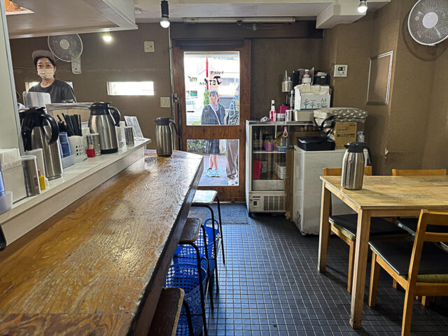 カウンター席9席に4人掛けテーブル2席って感じです。
