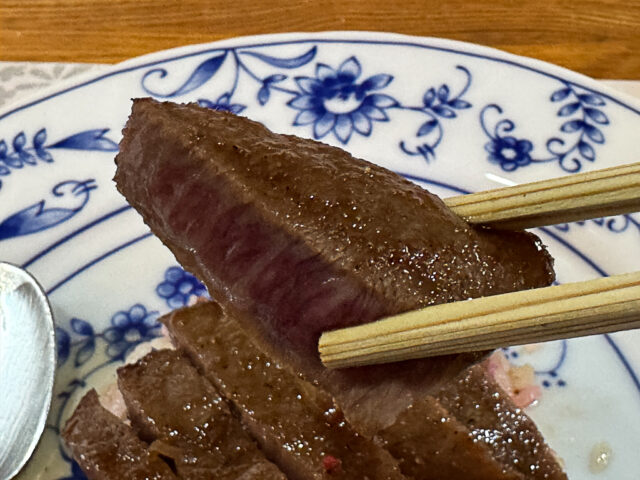 肉肉しくて赤身の旨みが口の中いっぱいに広がります。