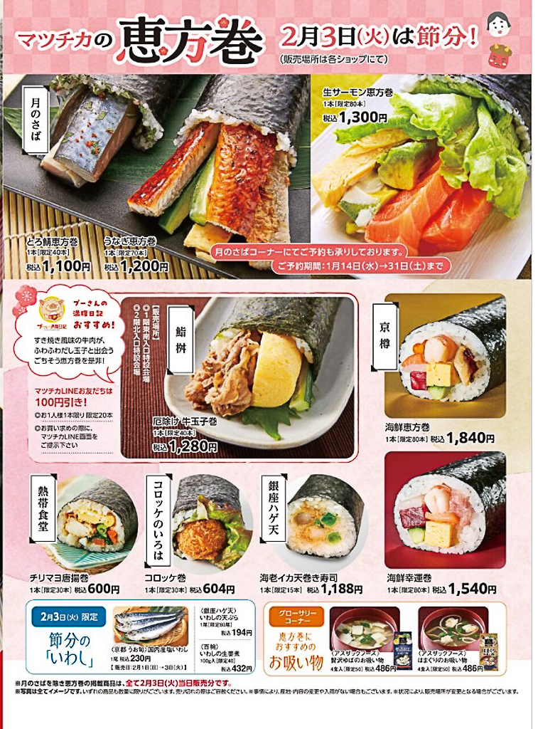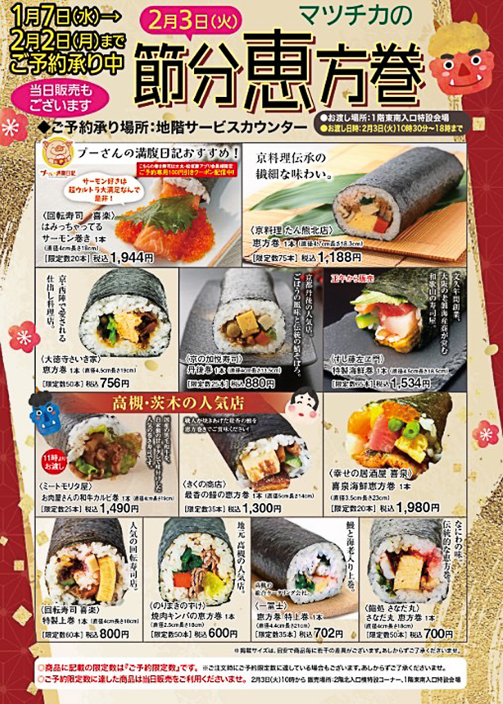 今回は恵方巻きの予約が地下1階のサービスカウンターでできます。